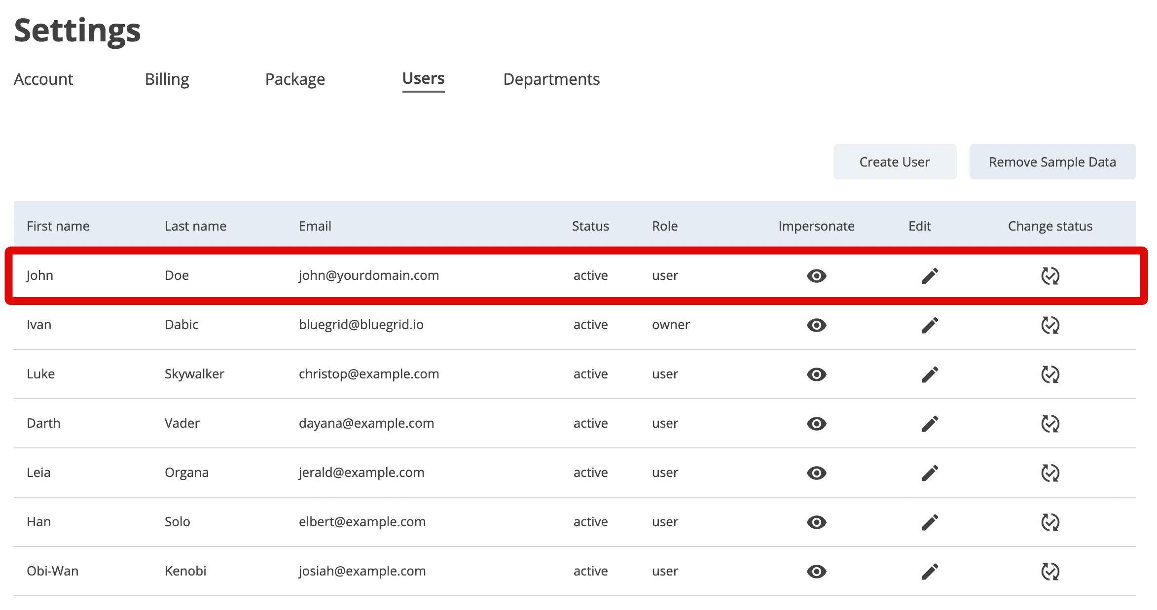 - Go to the Users section of the settings.