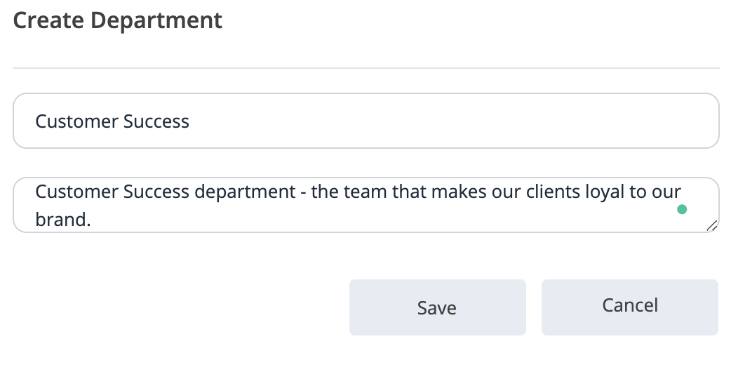 - Navigate to Settings -> Departments.